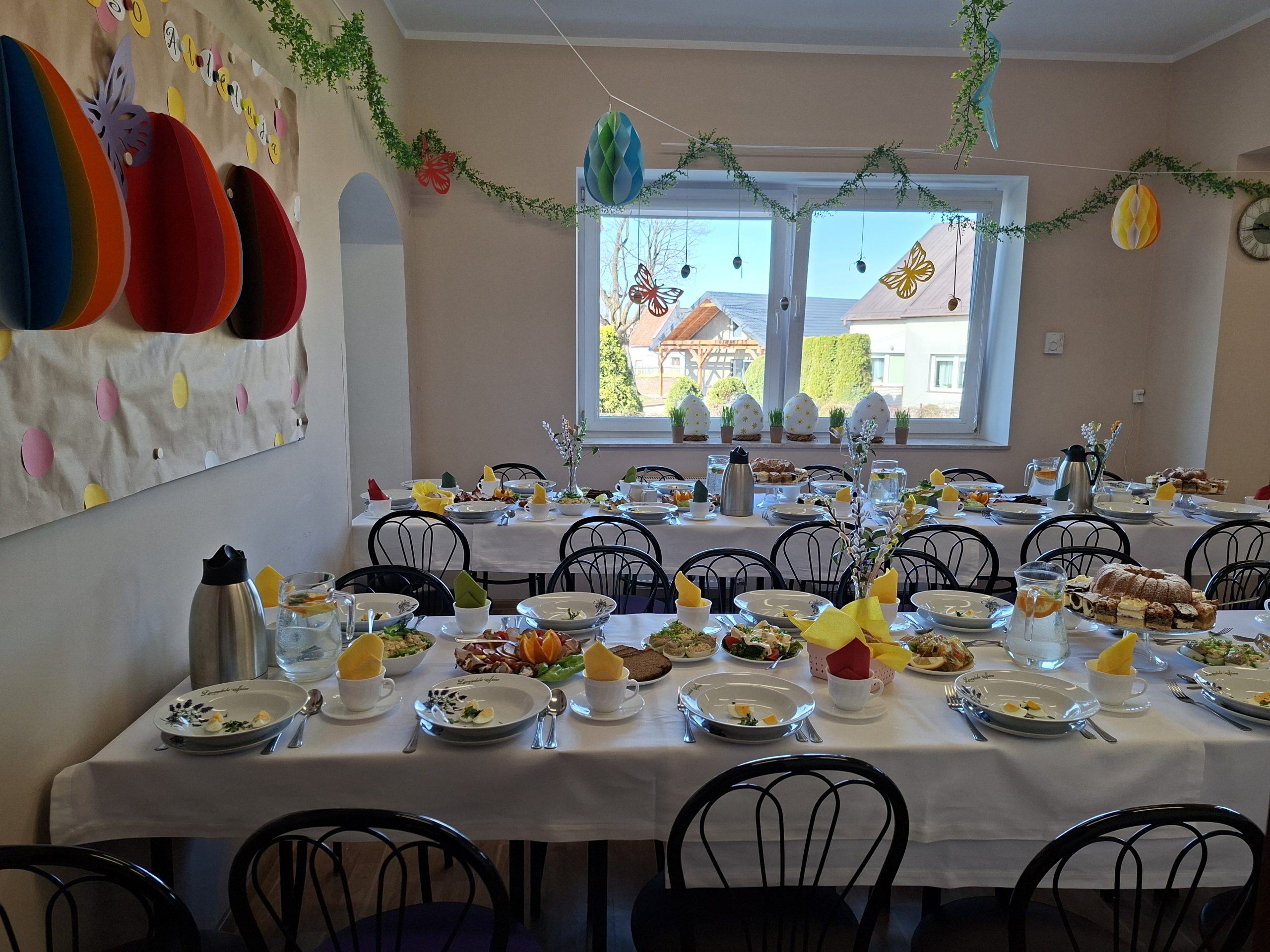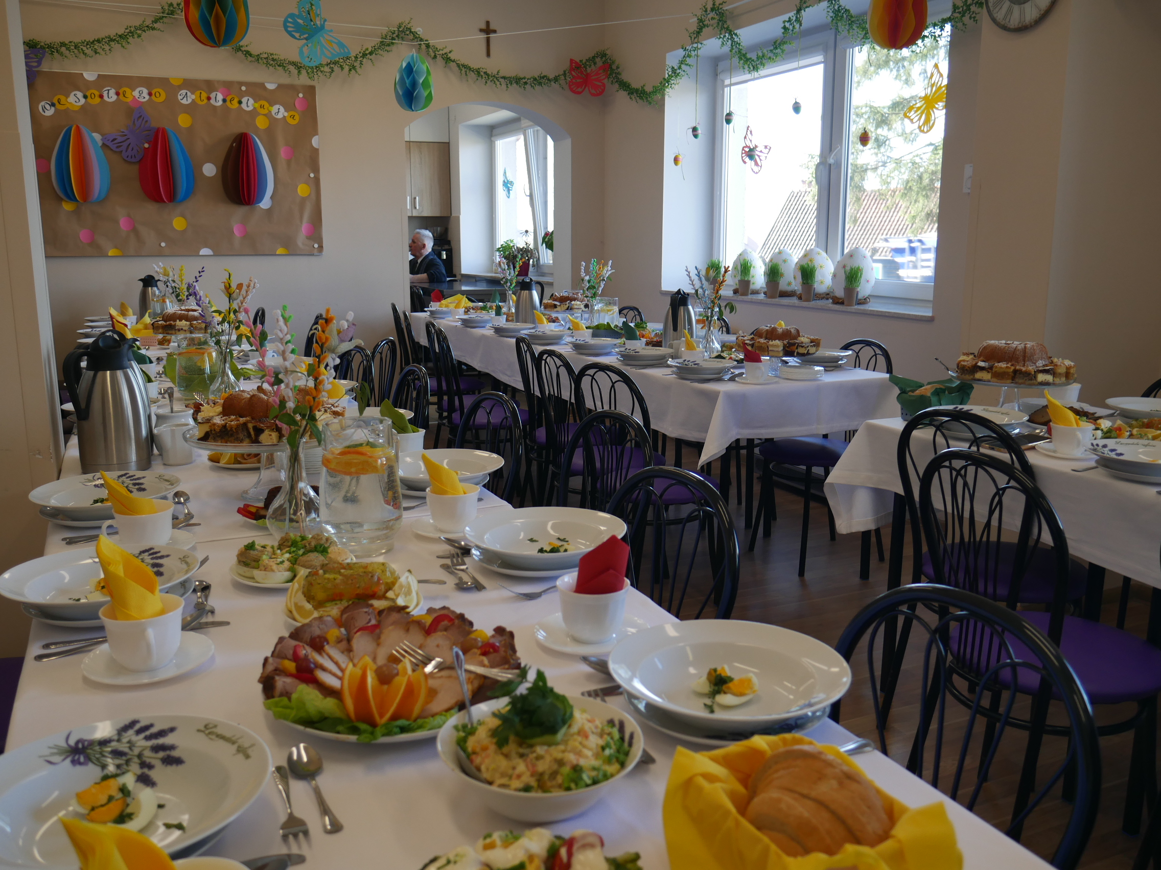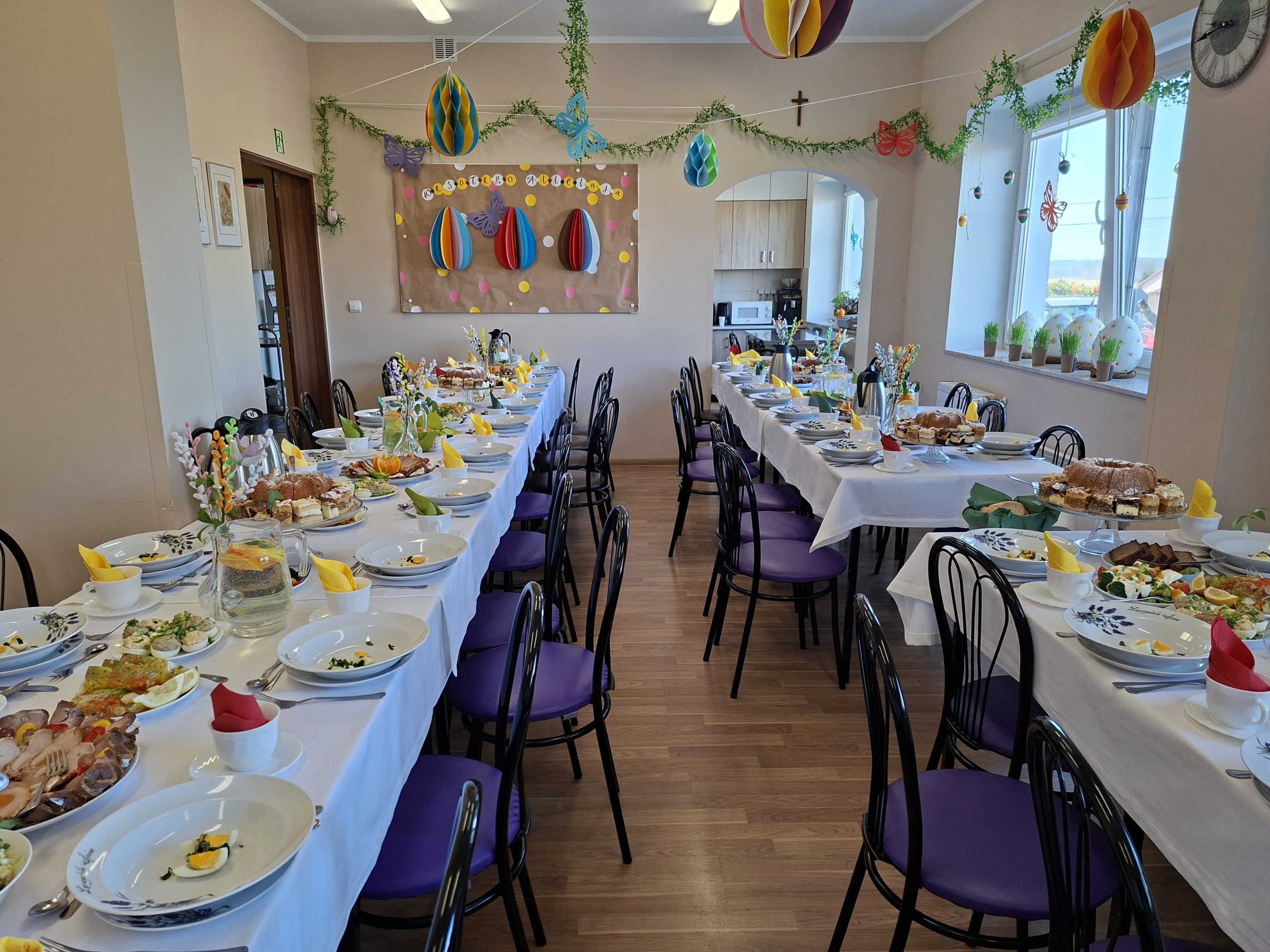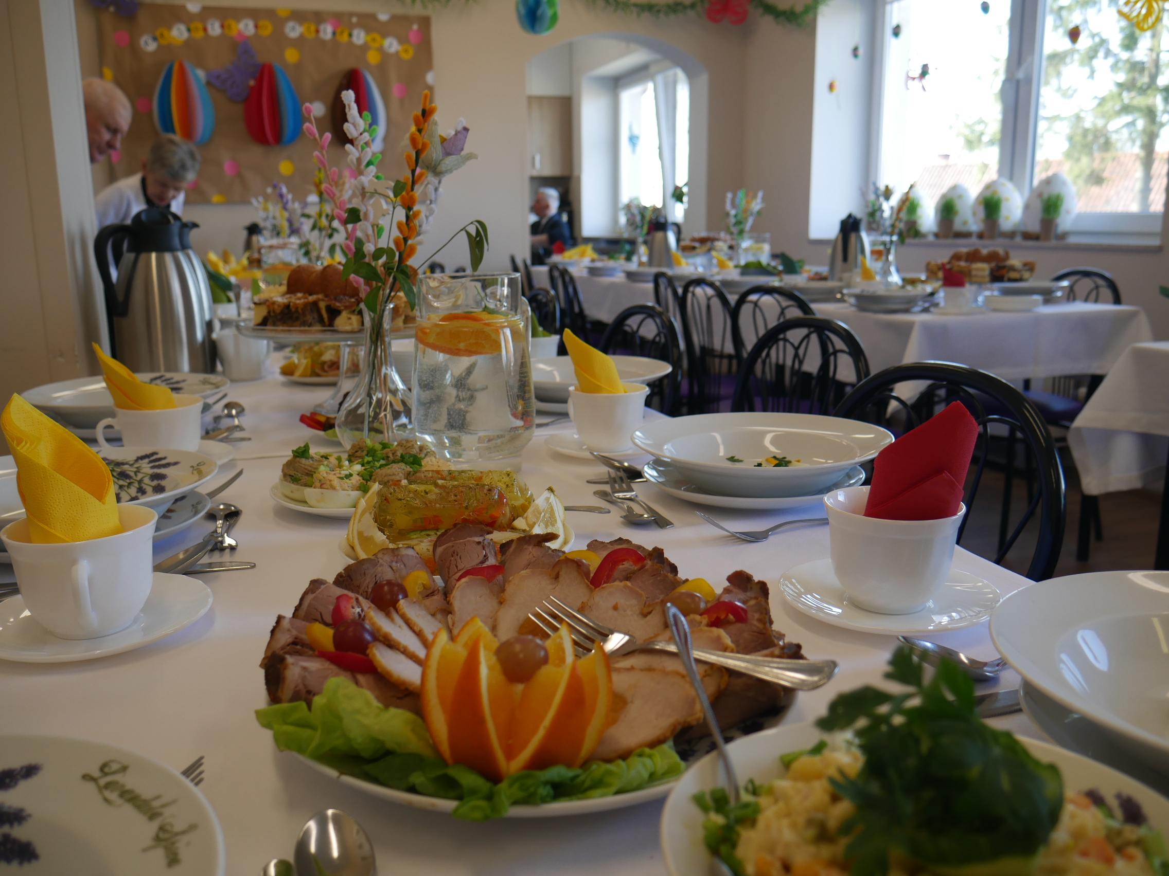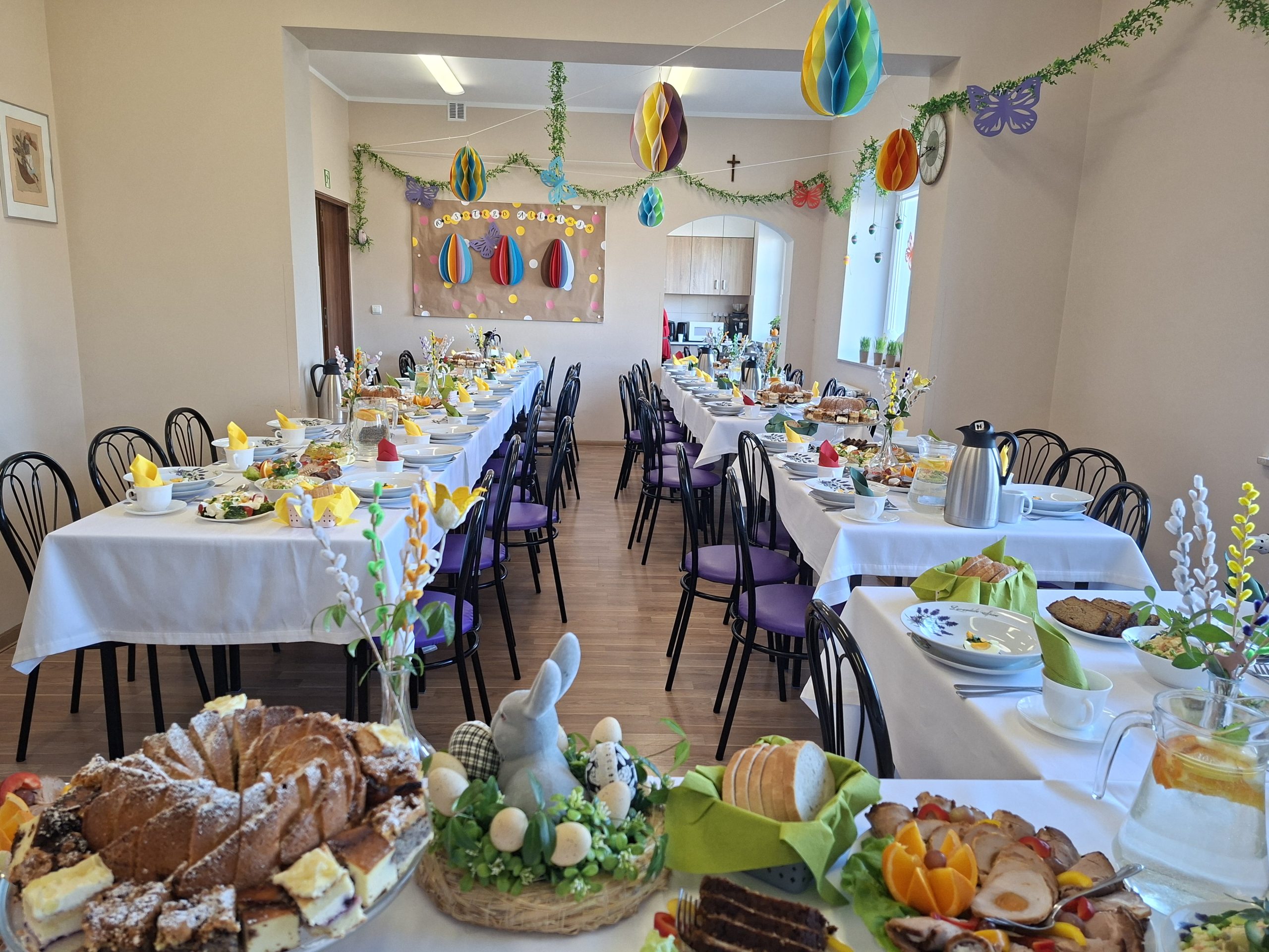 Śniadanie Wielkanocne poprzedzone jest długotrwałymi przygotowaniami, odbywającymi się w pracowni kulinarnej, pracowni plastycznej oraz pracowni rękodzielniczo – krawieckiej. Efekty widać podczas wielkanocnego spotkania: przepięknie udekorowany stół, smaczne, tradycyjne potrawy wielkanocne, upominki dla naszych gości. Wszystko to stanowi uroczystą oprawę spotkania.