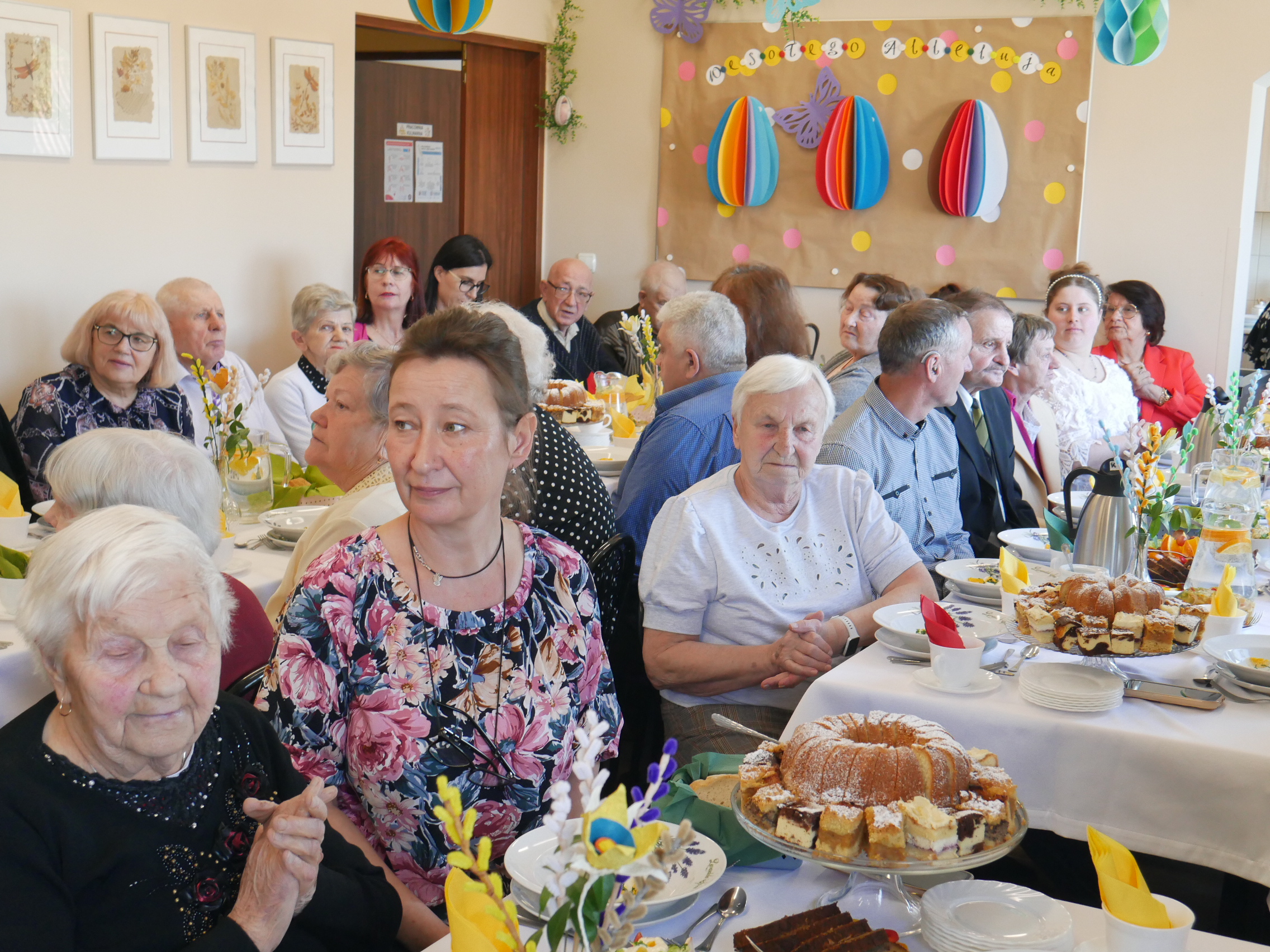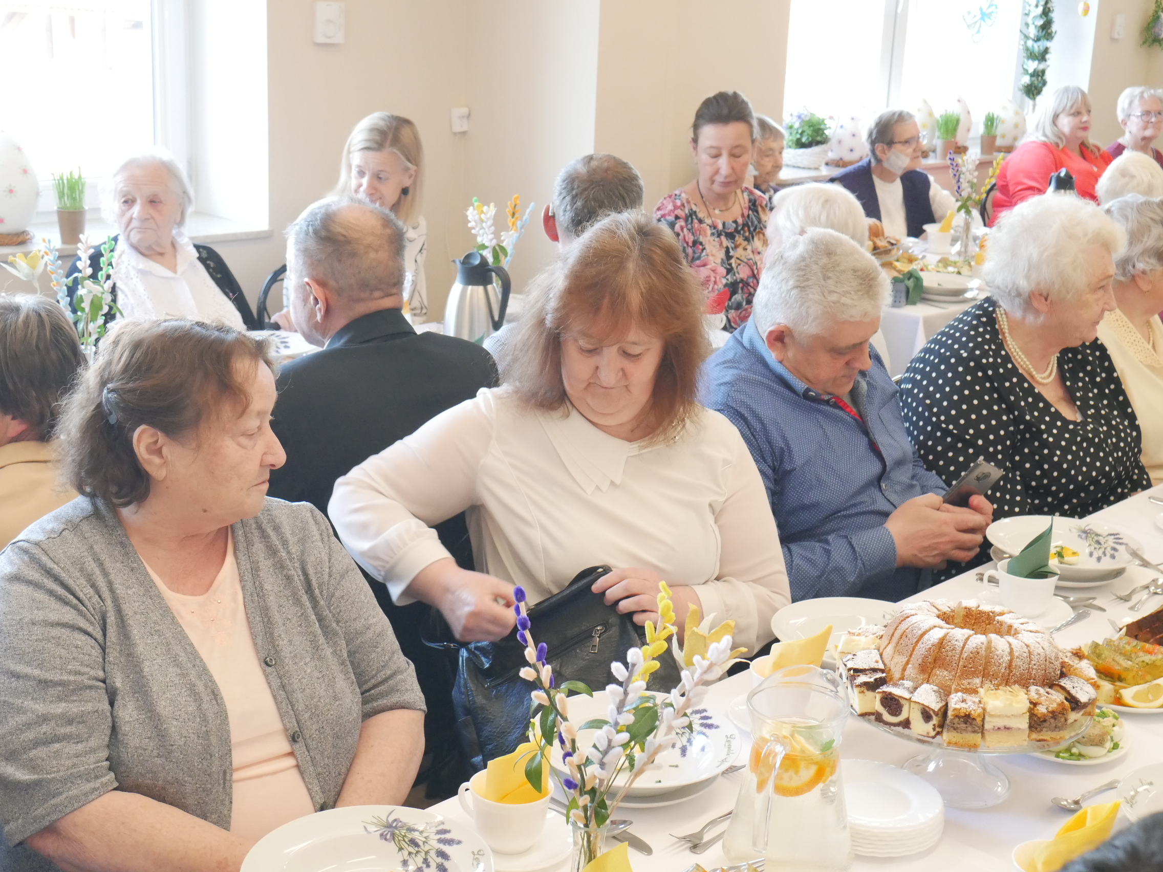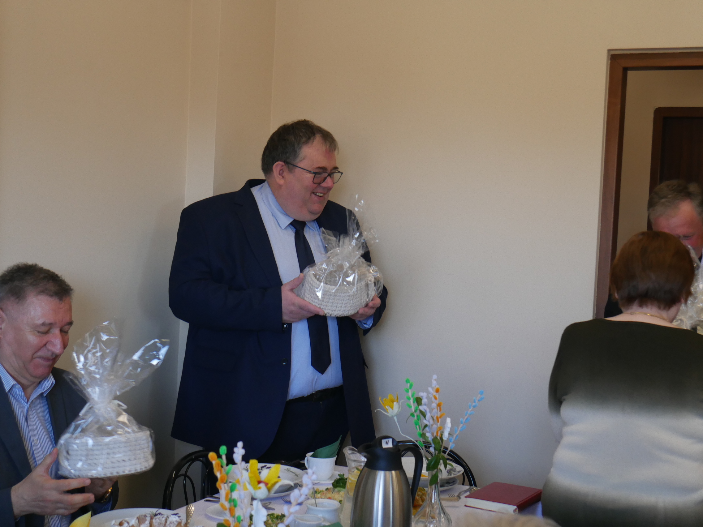 W naszym Domu tradycyjne już spotkanie przy wielkanocnym stole odbyło się w tym roku środę 1 kwietnia. Nasza społeczność gościła tego dnia Przyjaciół naszej placówki – Pana Sławomira Ambroziaka Wójta Gminy Jedwabno, Księdza Proboszcza Romana Lompę, Panią Elżbietę Brzóskę – przewodniczącą Rady Gminy Jedwabno, Panią Elżbietę Katarzynę Koperską – zastępczynię Wójta, Pana Zbigniewa Kudrzyckiego – sekretarza Gminy Jedwabno, Panią Agnieszkę Skwiot – kierownik Gminnego Ośrodka Pomocy Społecznej w Jedwabnie oraz Panią Krystynę Kabałę – pierwszą Kierownik ŚDS, przyjaciółkę naszego Domu.