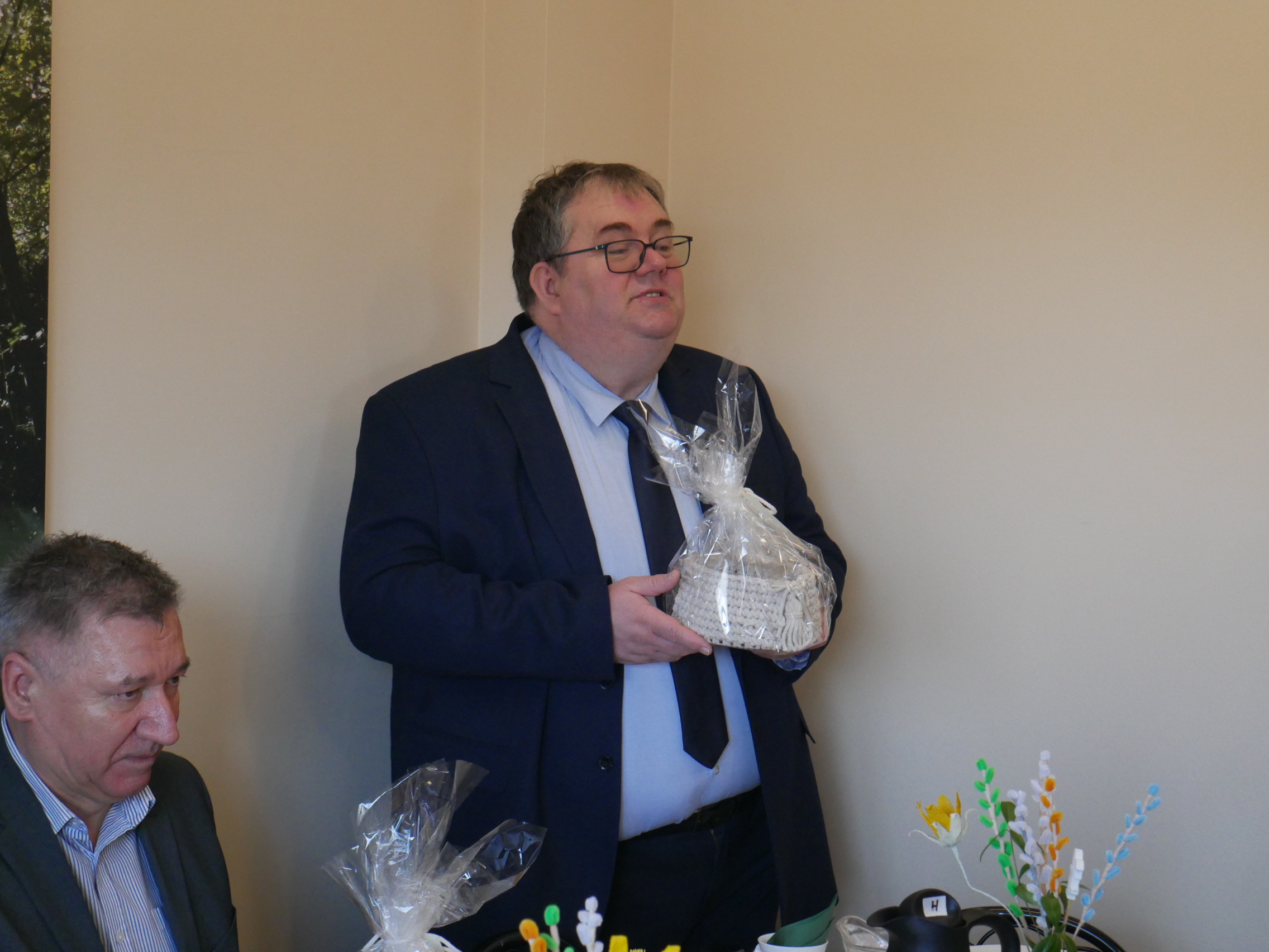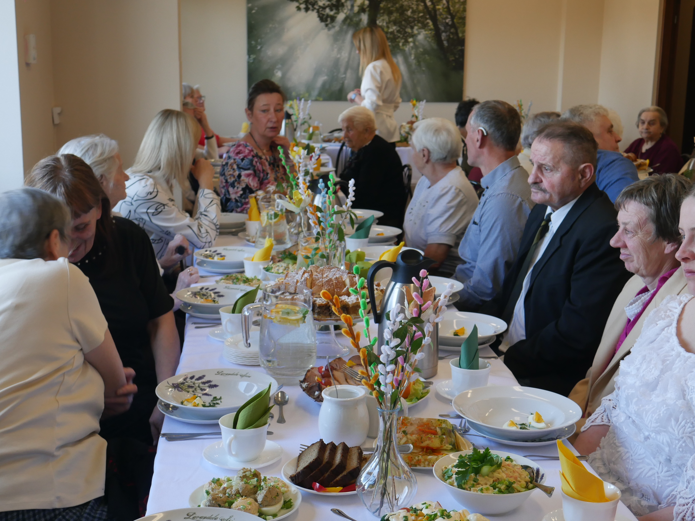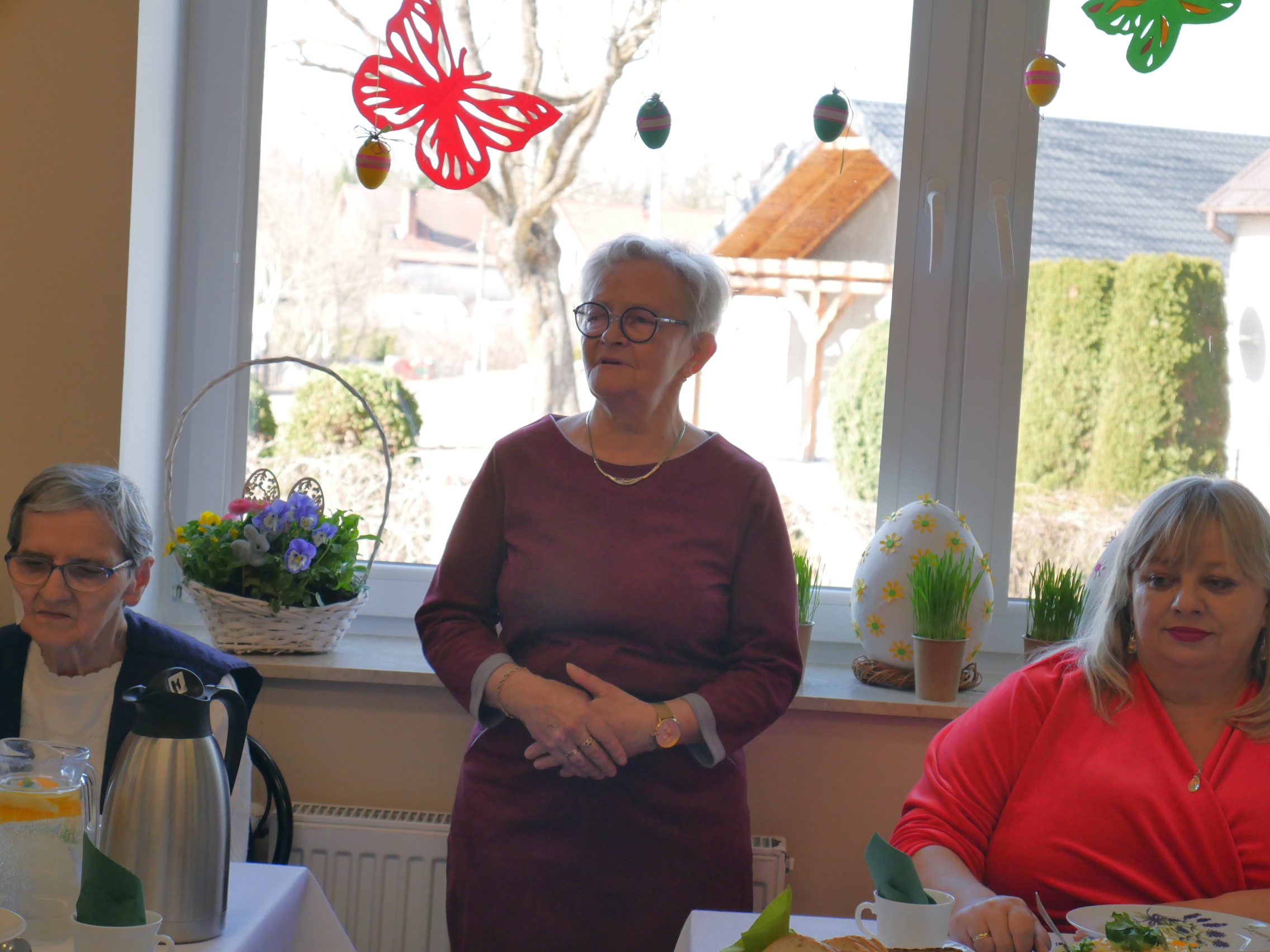 W naszym Domu tradycyjne już spotkanie przy wielkanocnym stole odbyło się w tym roku środę 1 kwietnia. Nasza społeczność gościła tego dnia Przyjaciół naszej placówki – Pana Sławomira Ambroziaka Wójta Gminy Jedwabno, Księdza Proboszcza Romana Lompę, Panią Elżbietę Brzóskę – przewodniczącą Rady Gminy Jedwabno, Panią Elżbietę Katarzynę Koperską – zastępczynię Wójta, Pana Zbigniewa Kudrzyckiego – sekretarza Gminy Jedwabno, Panią Agnieszkę Skwiot – kierownik Gminnego Ośrodka Pomocy Społecznej w Jedwabnie oraz Panią Krystynę Kabałę – pierwszą Kierownik ŚDS, przyjaciółkę naszego Domu.