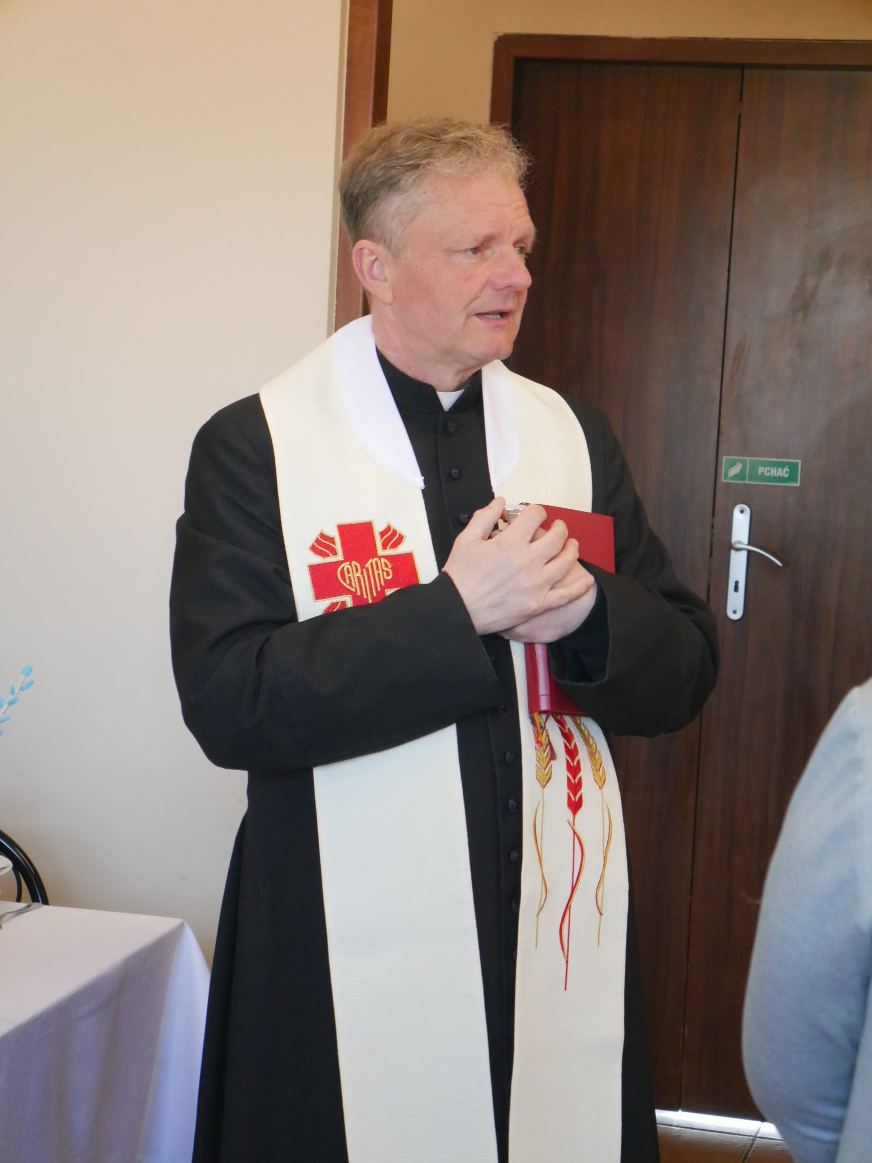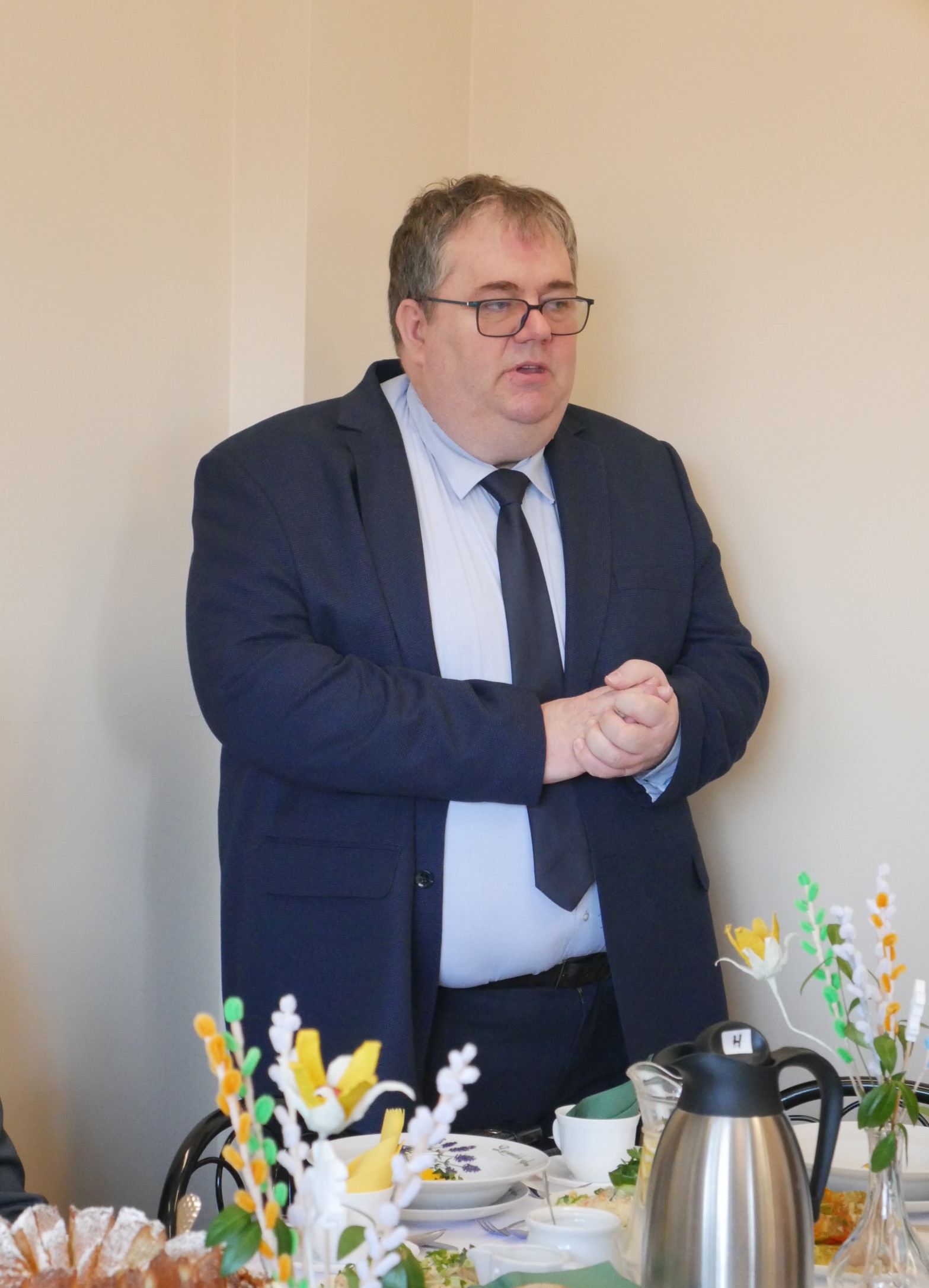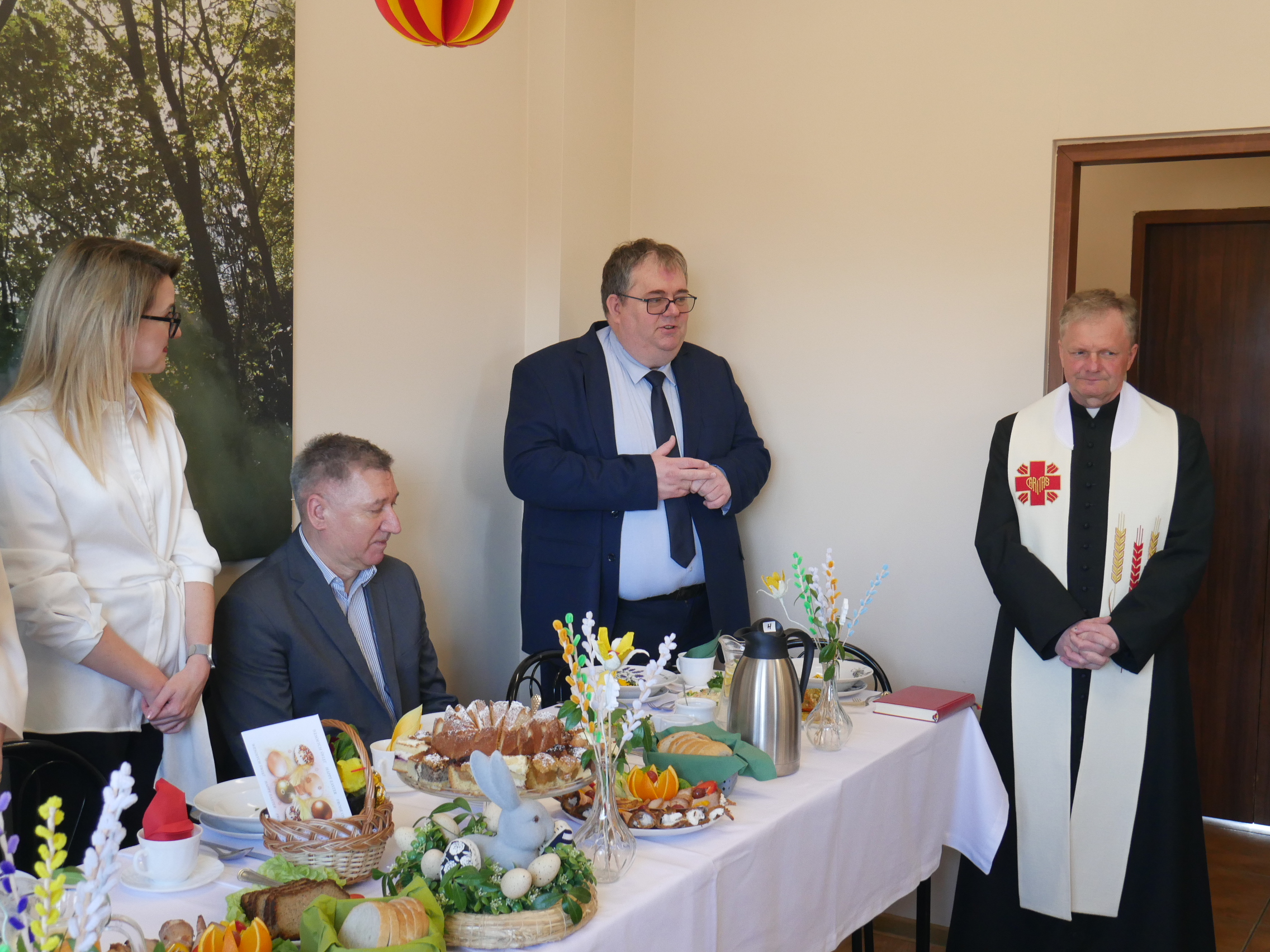 Spotkanie rozpoczął Ksiądz Proboszcz Roman Lompa tradycyjną modlitwą i poświęceniem pokarmów. Nie zabrakło życzeń i ciepłych słów od naszych gości oraz Pani Kierownik Wiolety Wojciechowskiej.